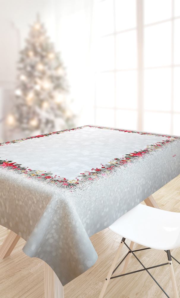 Χριστουγεννιάτικο τραπεζομάντηλο κατασκευασμένο από 100% polyester σε φυσικούς τόνους με την υπογραφή του γαλλικού οίκου Saint Clair Paris. Διάσταση 145×180εκ.